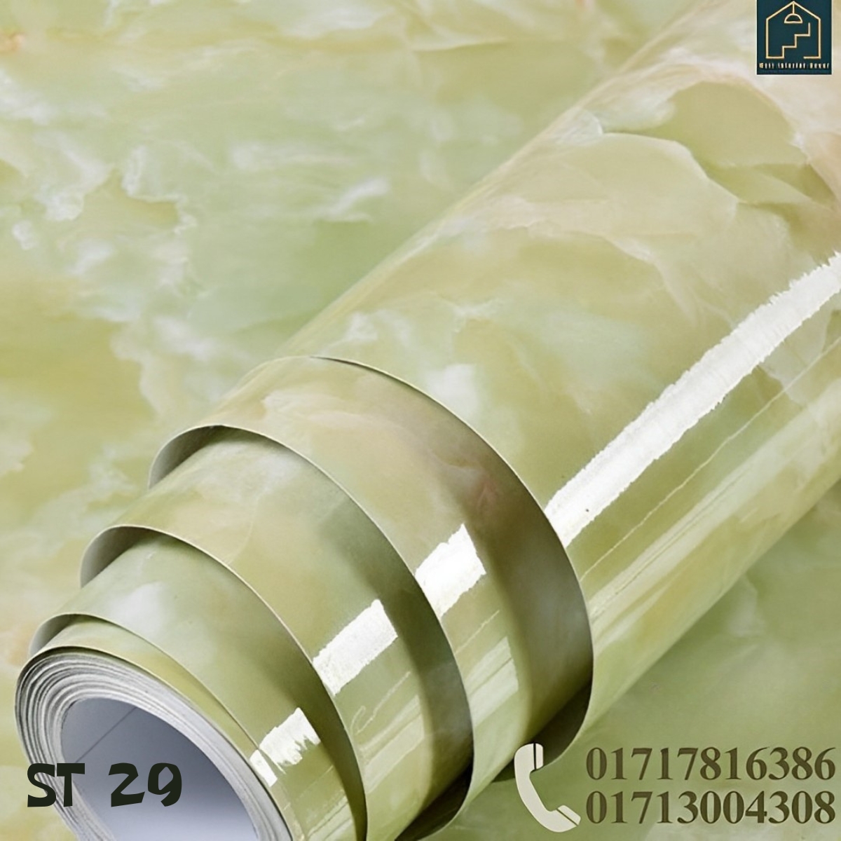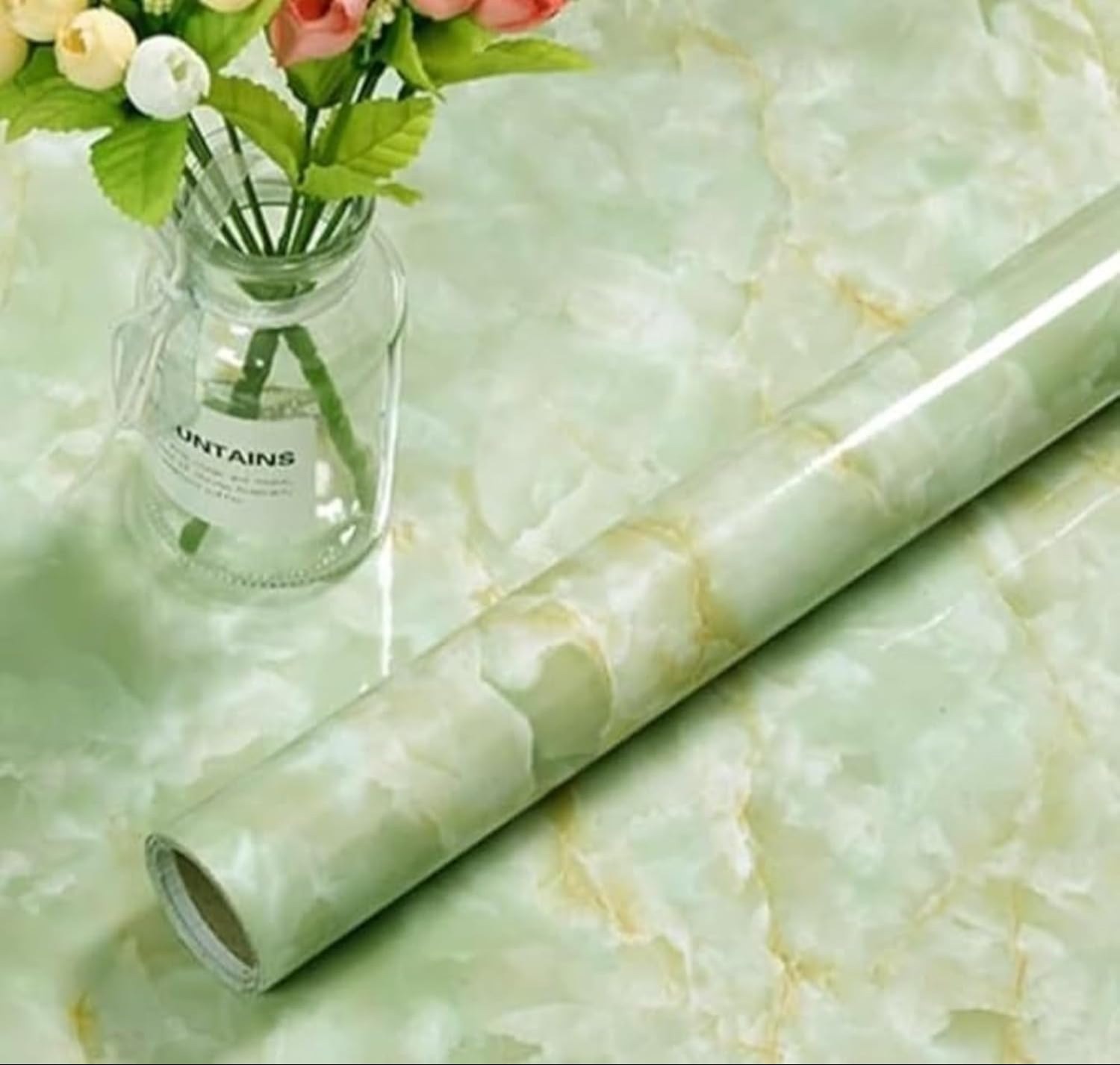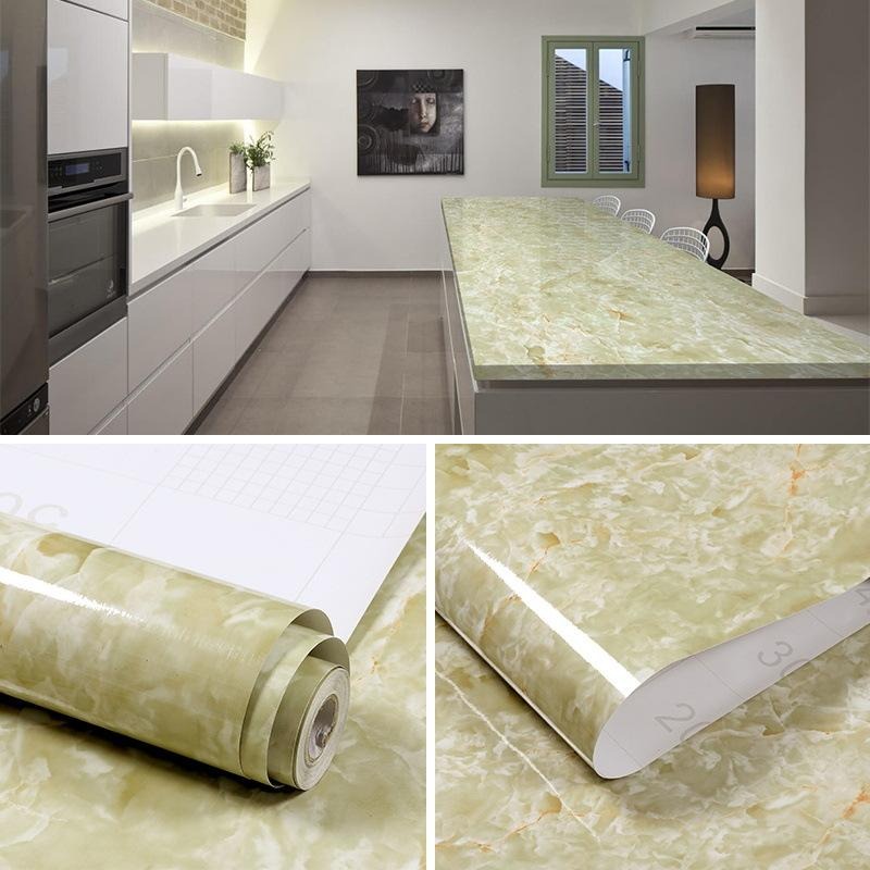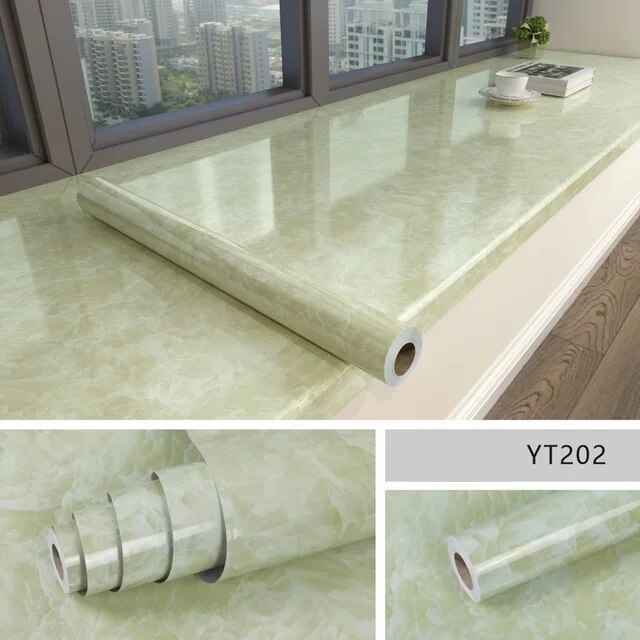 - Green Marble Pattern self-adhesive wall stickers waterproof PVC wallpaper mural furniture decoration stickers home wallpaper